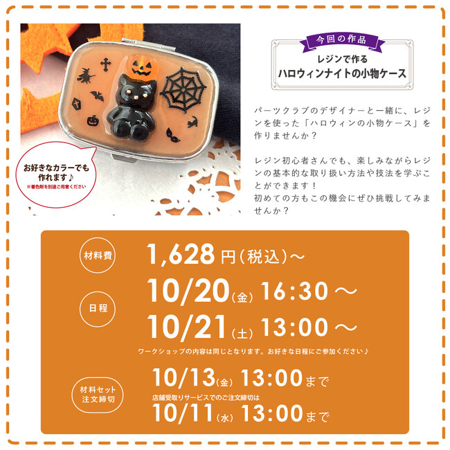 パーツクラブのデザイナーと一緒に、レジンを使った「ハロウィンの小物ケース」を作りませんか?