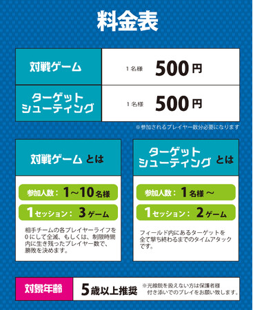 FPSゲーム好きな方はもちろん、一般的なサバイバルゲームなどにハードルを感じている女性の方やお子様など幅広い年代の方々に気軽にお楽しみいただけることが特徴です。