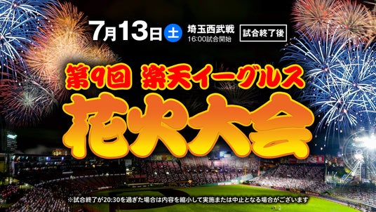 株式会社楽天野球団(本社:宮城県仙台市宮城野区、代表取締役社長:森井 誠之)は、7月13日(土)埼玉西武ライオンズ戦の試合終了後に開催する『第9回楽天イーグルス花火大会』のスペシャルゲストに「ET-KING」さんが登場することとなりましたので、お知らせいたします。