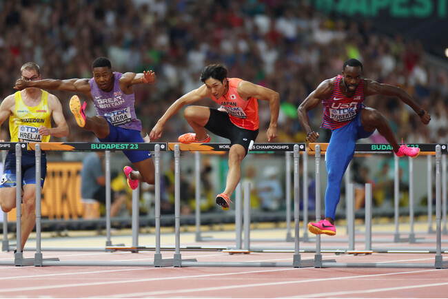 第1戦でパリ五輪代表内定をつかみ取った男子110mハードルの泉谷駿介(住友電工)は2週続けて存在感を示しました。中盤以降は何度もハードルに脚をぶつけてバランスを崩しながらも、東京五輪金メダルのパーチメント(ジャマイカ)らを抑えて貫禄の2位。13秒23のタイムには満足していませんでしたが「順位はいい方だった」と前向きに捉えました。