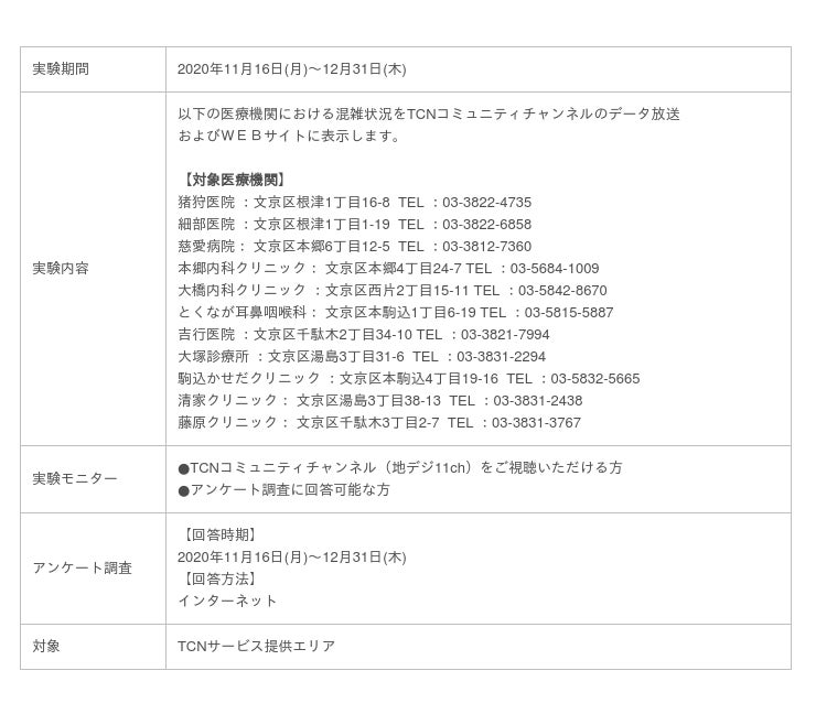 ≪「データ放送で文京区内医療機関の混雑状況を可視化」実証実験概要≫