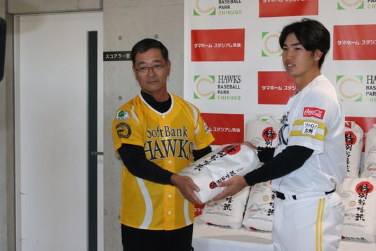この取り組みは、HAWKSベースボールパーク筑後が開業した2016年以来毎年実施されており、今回で10回目を迎えます。地域で収穫された新米を、若鷹寮で生活をしながら支配下入りを目指して練習に励む選手達へ届けることで、地元からの温かい応援の気持ちを伝えています。