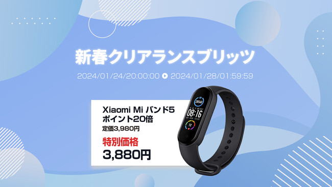 楽天市場「Show !t」はシャオミのMiバンド5を通常価格3,980円(税込)のところ3,880円(税込)の特別セール価格での販売とポイント20倍プレゼントを決定。また、1月24日(水)20:00~1月28日(日)01:59まで開催される、楽天お買い物マラソンに参加し、ポイント10倍プレゼント(一部商品を除く)を実施します。この機会にシャオミのスマートバンドMiバンド5でポイントをおトクに貯めましょう。