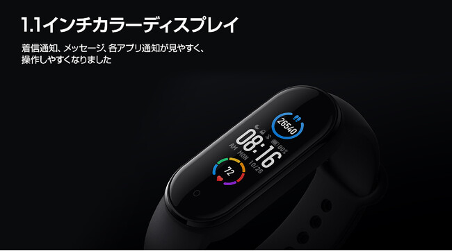 Xiaomiのスマートで見やすい1,1インチフルカラーディスプレイが魅力のMi Band 5