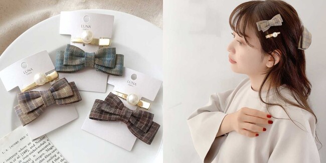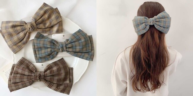 知的で柔らかな印象のタータンチェックのヘアアクセサリー。