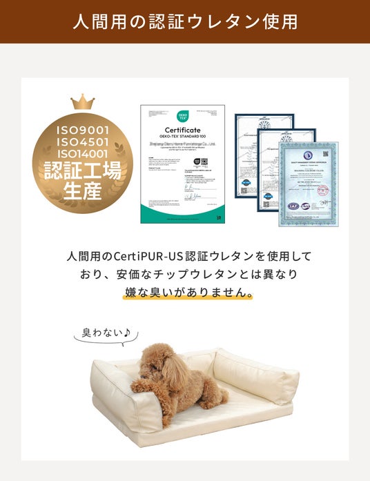 「デザイン性」と「機能性」を両立させた本商品は、“お部屋になじむペットベッド”としてファンを獲得。インテリアを邪魔しない美しい佇まいと、ペットの快適性を追求した設計が、ドッグトレーナーをはじめ多くの飼い主さまからご支持をいただいています。