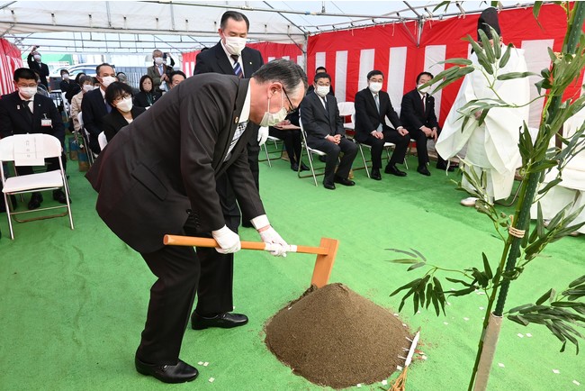 私どもは2021年4月に、事業者として酒田市から採択をいただき、その後約半年かけて、酒田市と生活クラブ生協、東北公益文科大学、それから設計や工事関係のみなさまから、ご意見ご要望またご指導ご助言をいただき、当初の計画をブラッシュアップしてまいりました。そして本日ようやくこの地鎮祭に至ることができました。ただ、事業はこれからがスタートです。これは酒田市の中心において実施される山居倉庫周辺整備計画のひとつでもあり、大変注目されている事業でもあります。工事関係の皆様には、どうか安全に工事を進めていただき、来年3月の入居を目指してよろしくお願い申し上げます。