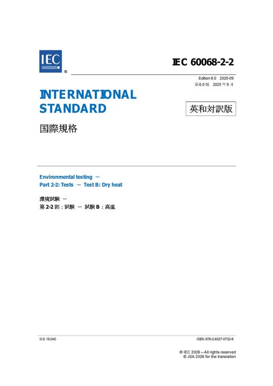 IEC 60068-2-2 Ed. 6.0:2025 (b) 環境試験-第2-2部:試験-試験B:高温 Environmental testing - Part 2-2: Tests - Test B: Dry heat