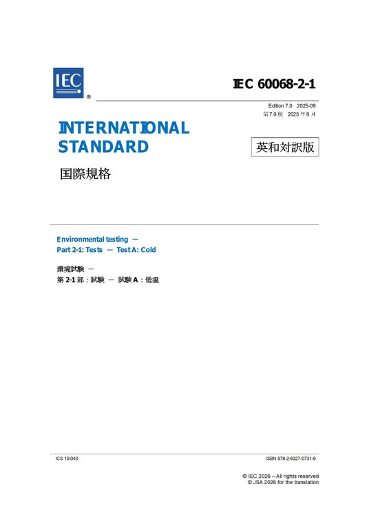 IEC 60068-2-1 Ed. 7.0:2025 (b) 環境試験-第2-1部:試験-試験A:低温 Environmental testing - Part 2-1: Tests - Test A: Cold