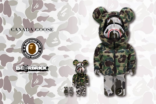 A BATHING APE(R)(ア ベイシング エイプ(R)︎以下、BAPE(R)︎)とCANADA GOOSE(カナダグース)、MEDICOM TOY(メディコムトイ)がコラボレーションしたBE@RBRICK(ベアブリック)「BE@RBRICK BAPE(R) x CANADA GOOSE SHARK 100% & 400%と1000%」が登場します。サイズは、1000%と100%&400%の2種類がラインアップ。