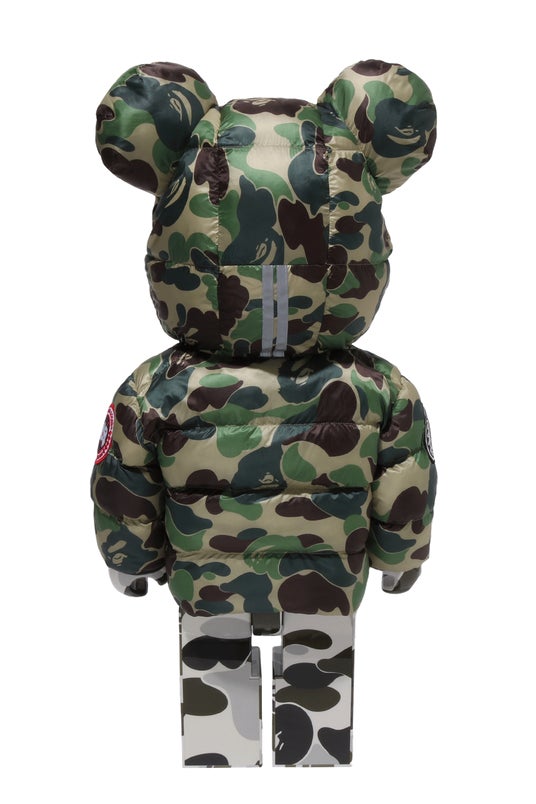 本体の背中には、BAPE(R)︎とCANADA GOOSEの2つのロゴをデザイン。100%&400%も、パッファージャケットをベースにしたデザインを落とし込んでいます。