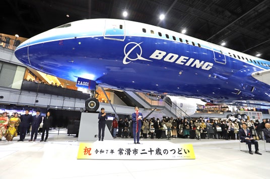 中部国際空港セントレア(所在:愛知県常滑市)にある商業複合施設フライト・オブ・ドリームズ内「フライトパーク」にて、ボーイング787初号機を前に「令和7年常滑市二十歳のつどい」が開催されました。