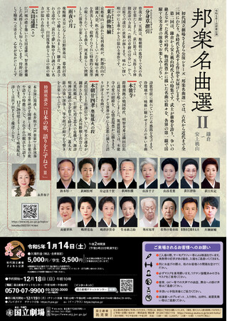 【国立劇場】1月邦楽公演『邦楽名曲選II 鎌倉~安土桃山』 特別座談会「特別座談会 日本の歌、語りをたずねてII」12月26日(月)より、ミレールにて配信開始いたします。