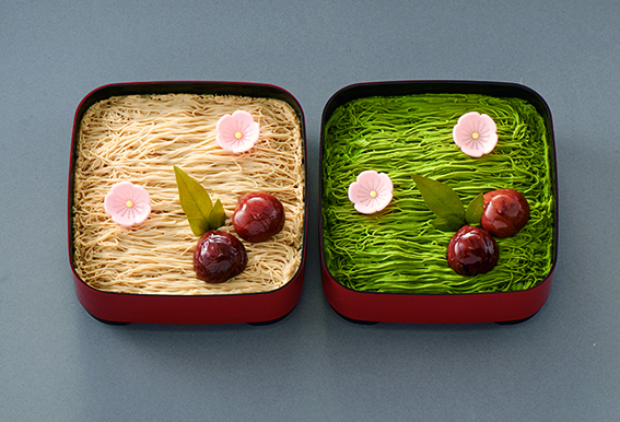 四季の風趣を凝らした京料理の名門、「たん熊北店」が初めて手掛けたスウィーツおせち。一の重には和栗のモンブランクリーム、二の重には和栗のモンブランクリームに京都府産抹茶を加えた抹茶クリームがぎっしりと詰まった、格別な味わいです。冷凍便にてお届けいたします。