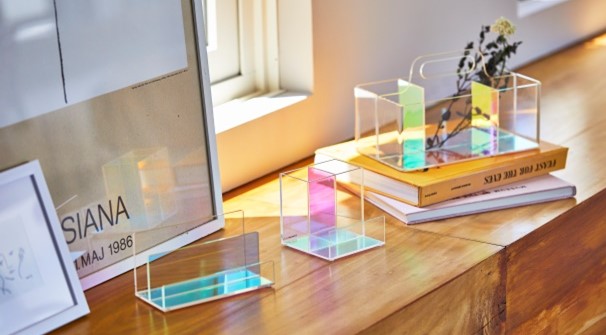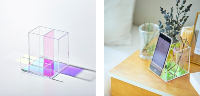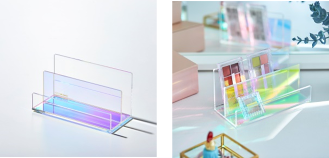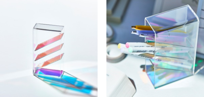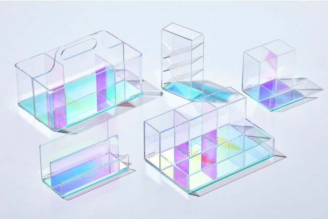 近年、食器やファッション小物など様々な分野でオーロラカラーのアイテムが人気となっています。キングジムはこの背景に着目し、「ルミリア」アクリル収納シリーズを発売します。