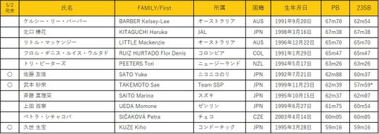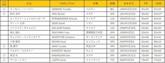 22024年5月19日(日)に国立競技場にて開催する「セイコーゴールデングランプリ陸上2024東京」の男女やり投に出場を予定している選手を下記の通りお知らせいたします。(2024年5月2日現在)男子やり投にはリオデジャネイロ2016オリンピック競技大会日本代表で日本歴代2位の86m83の自己記録を持つ新井涼平(スズキ)、ブダベスト2023世界選手権決勝進出の経験を持つティモシー・ハーマン(ベルギー)の出場が決定しました。既に出場を発表している選手を含め、80m越えの自己ベストを持つスロワー10名が国立競技場に集結します。女子やり投にはオレゴン2022世界選手権日本代表の武本紗栄(Team SSP)、ドーハ2019世界選手権日本代表の佐藤友佳(ニコニコのり)の出場が決定しました。ブダベスト2023世界選手権金メダリストの北口榛花(JAL)、銀メダリストのフロル・デニス・ルイス・ウルタド(コロンビア)、銅メダリストのトリトル・マッケンジー(オーストラリア)、オレゴン世界選手権金メダリストのケルシー・リー・バーバー(オーストラリア)に挑みます。本大会はワールドアスレティックスが主催するダイヤモンドリーグ以外の世界最高となるシリーズ「ワールドアスレティックスコンチネンタルツアー」最上位・ゴールドとして開催いたします。チケット好評販売中!