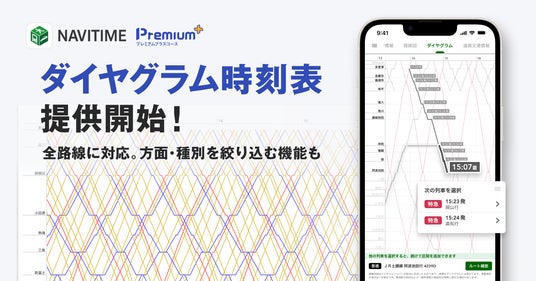 株式会社ナビタイムジャパン(代表取締役社長:大西 啓介、本社:東京都港区)は、2026年2月19日(木)より、総合ナビゲーションアプリ『NAVITIME』のプレミアムプラスコースにて、「ダイヤグラム時刻表」を提供開始します。ナビゲーションアプリ上で、自由に拡大縮小やスクロール操作が可能なダイヤグラム形式の時刻表機能の提供は、日本初※となります。