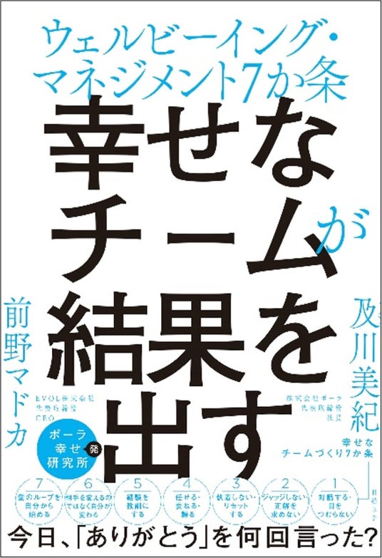 ポーラ幸せ研究所が、EVOL株式会社 代表取締役CEO・一般社団法人ウェルビーイングデザイン理事の前野マドカ氏とともに見出した、メンバーが皆幸せに働きながら結果を出すことができる“幸せなチームづくり7か条”を紹介した書籍。