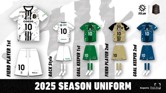 2024シーズンに引き続き、漫画家の高橋陽一先生と一緒に面白い”モノ”を作り出そうという想いの元に立ち上がり、サッカースポーツアパレルブランド「SOLum(ソルン)」を中心に事業展開するSOLUM株式会社(埼玉県吉川市、代表取締役 古川将士)様がユニフォームサプライヤーを務めます。