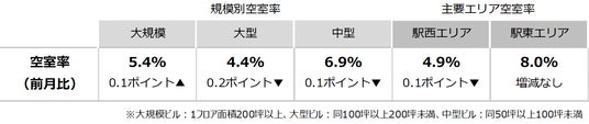空室率 前月から小幅に低下 大口の募集床は限定的な状況