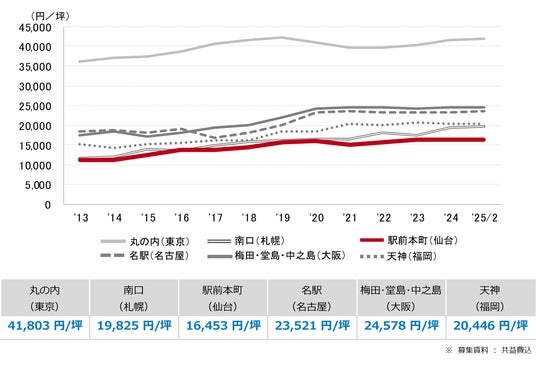 三幸エステート株式会社(本社:東京都中央区、取締役社長:武井重夫)は、2025年2月度の仙台市オフィス賃貸状況(空室率&現空面積:全規模、募集賃料&募集面積:全規模、規模別空室率、主要エリア※1空室率:全規模)および全国6大都市(東京・札幌・仙台・名古屋・大阪・福岡)の大規模ビルのマーケットデータをまとめた「オフィスマーケット2025年3月号仙台」を公表します。
