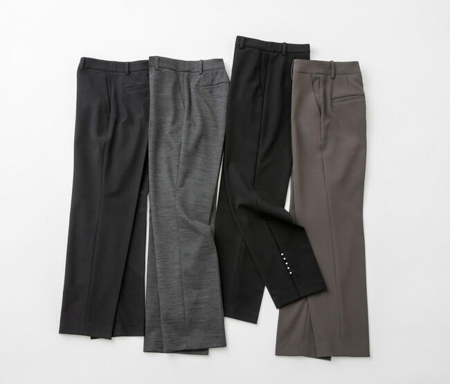 年齢を重ねることでおきやすい体型変化によるパンツ着用時の悩みを解決するために、婦人服4ブランドが工業技術チームと組み 「SANYO PANTS LAB.(サンヨーパンツラボ)」として開発。着用時の負荷や圧力について3D CAD(キャド)を使い解析し、工業技術チームの豊富な経験を活かしたパターン設計により、ブランドのお客さま層に向け快適なはき心地と美しいシルエットを実現したパンツです。