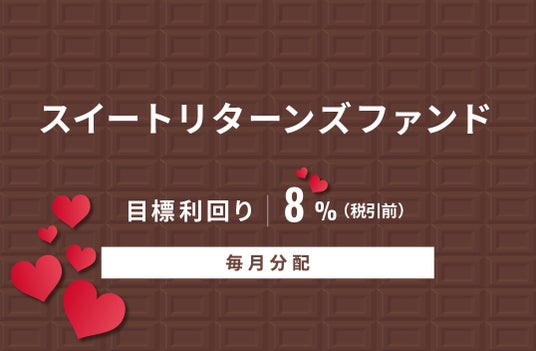 個人投資家の皆様にさまざまな投資機会を提供するオルタナティブ投資プラットフォーム「オルタナバンク」を運営するSAMURAI 証券株式会社(本社:東京都港区、代表取締役社長:山口 慶一)は、新商品『【毎月分配】スイートリターンズファンドID819』を公開いたしました。(詳細: https://www.alternabank.jp/fund/detail?id=819)