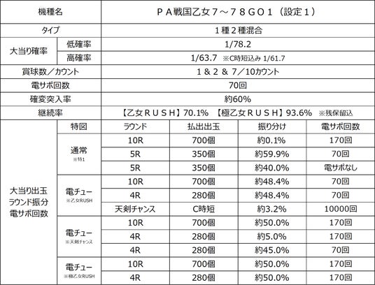 (1)販売名:PA戦国乙女7 終焉の関ヶ原 ときめき78バージョン