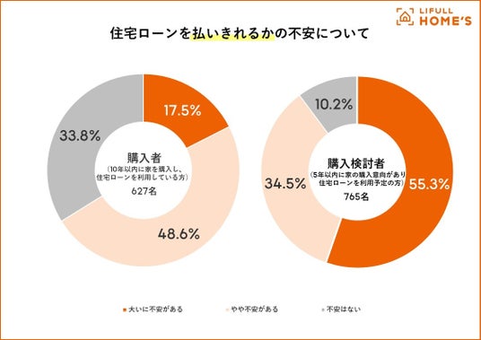 事業を通して社会課題解決に取り組む、株式会社LIFULL(ライフル)(本社:東京都千代田区、代表取締役社長:伊東祐司、東証プライム:2120)が運営する不動産・住宅情報サービス「LIFULL HOME'S」は、10年以内に住宅を購入し、住宅ローンを利用中(以降、購入者)の627名と5年以内に住宅を購入し、住宅ローンを利用予定(以降、購入検討者)の765名を対象に『住宅ローンに関する意識調査』を実施しました。