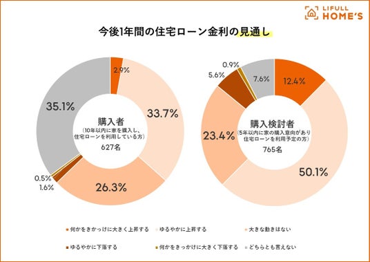 【今後1年間の住宅ローンの見通し】不安を反映か?「上昇」の予測は購入者36.6%に対し、購入検討者62.5%