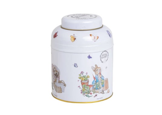 ピーターラビットの愛らしいデザインをエンボス加工で施した、大容量の紅茶缶です。