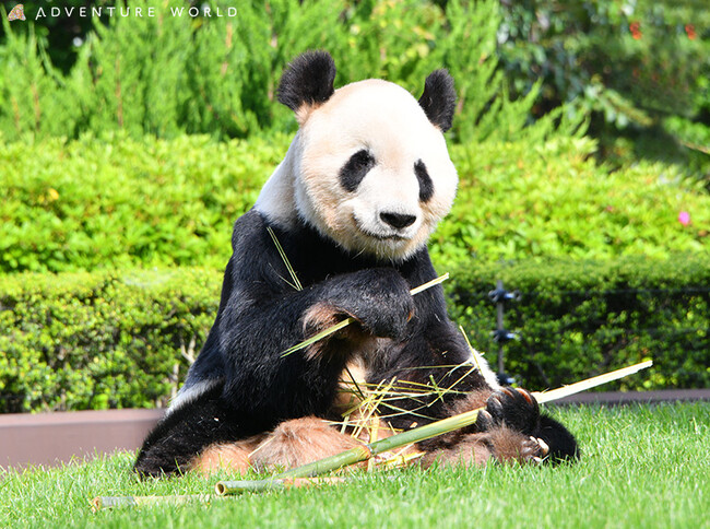 「永明」は1994年9月6日にジャイアントパンダでは世界で初めてとなるブリーディングローンによる、日中共同繁殖研究のため来園し、初代お母さんパンダ「梅梅(めいめい)」(メス・2008年永眠)との間に6頭、2000年にアドベンチャーワールドで生まれた「良浜(らうひん)」(メス・22歳)との間に10頭、計16頭の子どもが誕生しました。2014年にふたごの「桜浜(おうひん)」「桃浜(とうひん)」が誕生した際「現在の飼育下で自然交配し、繁殖した世界最高齢のジャイアントパンダ」となり、2020年11月22日に「楓浜(ふうひん)」が誕生した際にその記録が更新されました。2023年2月に娘の「桜浜」「桃浜」と共に中国成都へと旅立つことが決まりました。12月に拝命した 「中日友好特使」として、今後も日中友好の架け橋として活躍を期待しています。