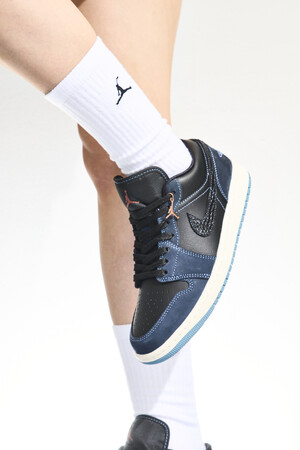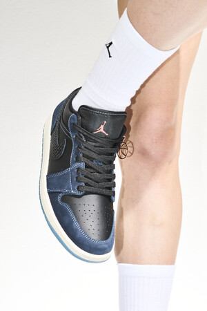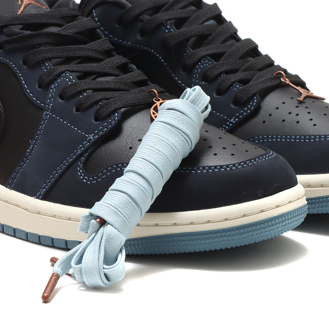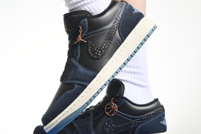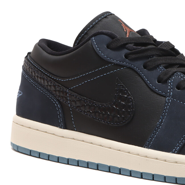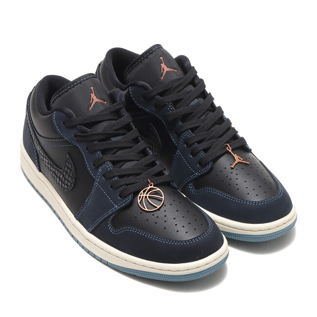 1984年に誕生し、39年を経た今も受け継がれるAIR JORDANの原点ともいうべきAIR JORDAN 1をベースに”バスケットボールコート”からインスパイアされたディテールを随所に盛り込んだモデル。アッパーには、ブラックレザーとネイビーヌバックを採用し、サイドのスウッシュはクロコダイル調の型押しレザーを使用したハイエンドなルックスを纏ったNIKE WMNS AIR JORDAN 1 LOW SEです。