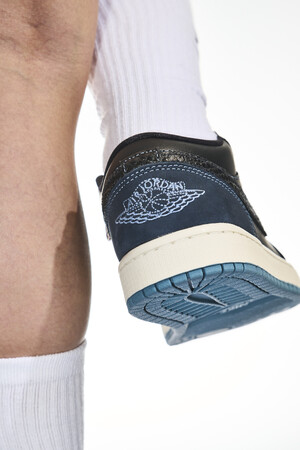 インソールには、バスケットコートがグラフィックでデザインされ、アウトソールには、マイケル・ジョーダンの出身校であるノースカロライナ大学のチームカラーのブルーを起用。