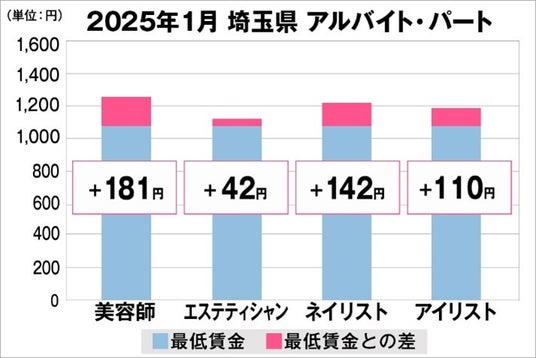 埼玉県の美容業界における採用時給料に関する調査結果(アルバイト・パート)2025年1月美プロ調べ