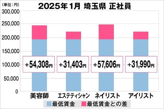 埼玉県の美容業界における採用時給料に関する調査結果(正社員)2025年1月美プロ調べ
