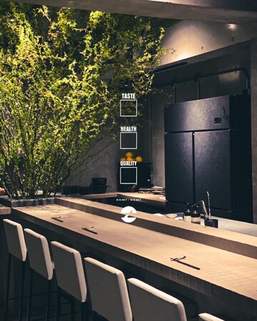 スタイリッシュでモダンな店内には、ライブ感のある調理風景を楽しめるカウンター席を用意しています。
