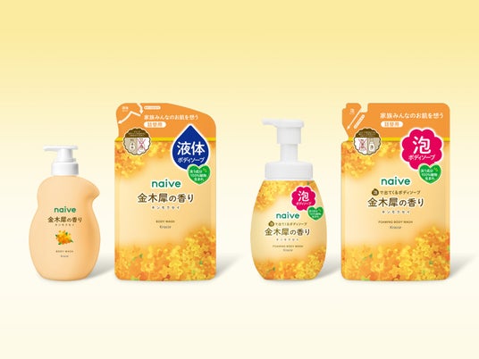 クラシエ株式会社(ホームプロダクツカンパニー)は、洗う成分100%植物生まれの「ナイーブ」から、秋の訪れを感じられる「金木犀の香り」のボディソープと洗顔フォームを、2024年8月9日(金)に数量限定で発売いたします。
