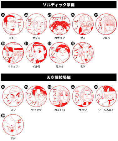 主人公・ゴンや、そこで出会った仲間であるキルア、レオリオ、クラピカ、ヒソカたちが登場した第一弾「ハンター試験編」「ゾルディック家編」にくわえ、第二弾として「天空闘技場編」「幻影旅団編」「グリードアイランド編」より51キャラクターが登場。SNSからもたくさんのリクエストをいただいていた、クロロ、ノブナガ、フェイタン、シャルナーク、シズクといった幻影旅団のメンバーをはじめ、グリードアイランド編のゴン、キルア、ヒソカ、ビスケなど、「HUNTER×HUNTER」ファンにはたまらないキャラクターがせいぞろいしています。