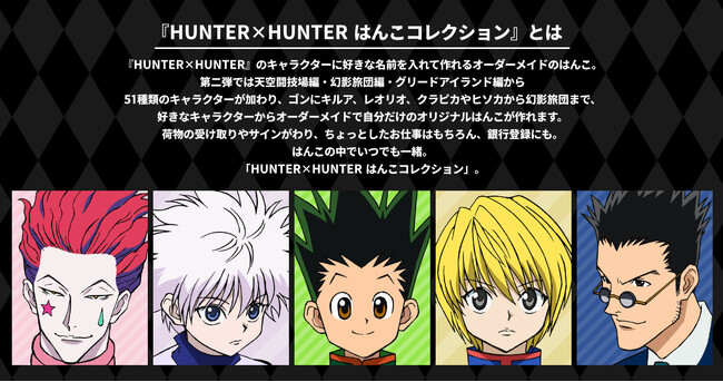 インターネットのはんこ屋さん「印鑑はんこSHOPハンコズ」を運営する株式会社岡田商会(所在地:大阪府大阪市、店長:岡山耕二郎)は自社オンラインショップにて、TVアニメ「HUNTER×HUNTER」のキャラクター入りはんこ「HUNTER×HUNTER はんこコレクション」の第二弾の販売を開始いたしました。