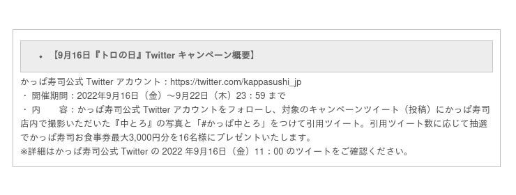【アプリ会員限定】2022年9月16日(金)、かっぱ寿司全店にて