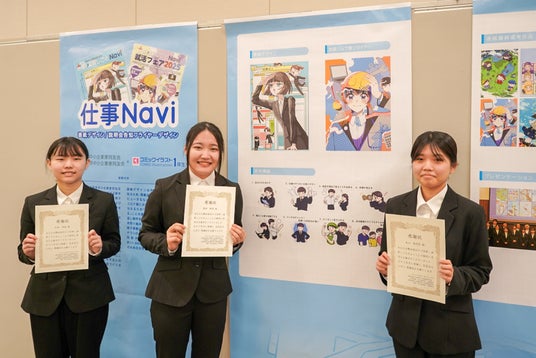 (一社)京都中小企業家同友会と(一社)滋賀県中小企業家同友会が主催する「京都滋賀しごとNavi 就活フェア2025」において、京都芸術デザイン専門学校の学生が、フェアのポスターと、パンフレットの表紙イラストと挿絵を担当しました。3名の学生の優れた作品に対し、主催者から感謝状を贈呈されました。
