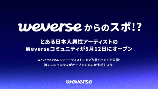 Global Superfan Platform「Weverse(読み:ウィバース)」は、本日正午12時にWeverse公式Xアカウント(@weverseofficial)に投稿されたポストおよびWeverse公式Instagramアカウント(@weverseofficial)のストーリーズにて、日本人男性アーティストのWeverseコミュニティが5月12日(月)にオープンすることを予告しました。