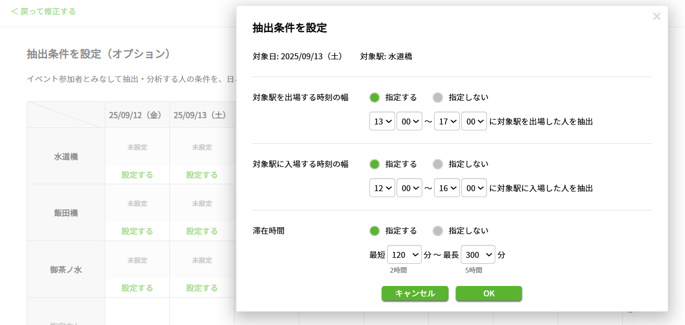 (2)複数の駅のエリア指定で、イベントの影響を広域に分析