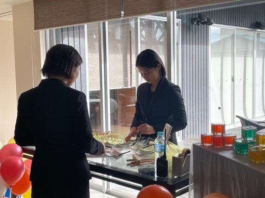 今回、提案したブライダルフェアのテーマは「カラフル」です。ブライダルフェアを通じてご成約につながるブライダルフェアの企画を学生たちで考えました。また、当日は会場のセッティングから、新規のお客さまへのブライダルフェアの企画説明も学生が担当しました。