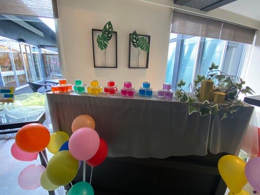 お好きな色のキャンドルをビュッフェスタイルで選んでいただき、クレールストーリアとして使用します。クレールストーリアのメッセージが浮き出る部分には、学生がお二人に向けたメッセージを準備し、サプライズ演出を行いました。
