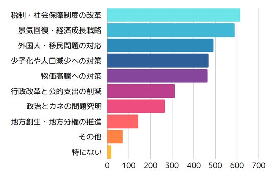・政治家に最も期待するのは「税制・社会保障制度の改革」が最多の618回答