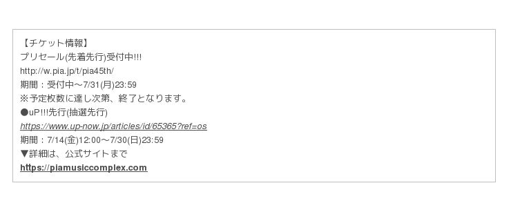 【PIA 45th ANNIVERSARY MUSIC COMPLEX 2017】