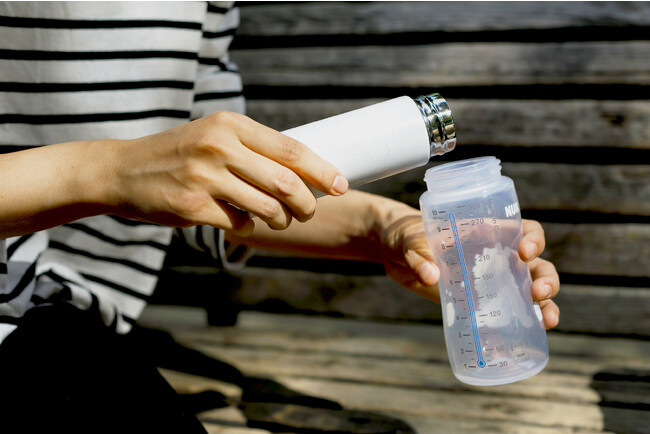 ボトルの容量は130ml。外で一回分のミルクづくりもできます。