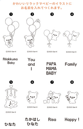 リラックマとコリラックマ、キイロイトリが登場する、8種類から選べるかわいいイラスト入り。名前を入れたりメッセージを入れたり、好きな文字を入れて、じぶんだけのマイボトルにカスタマイズできます。